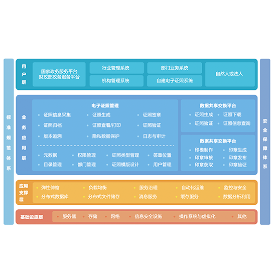 电子证照系统平台提供电子证照的全生命周期的管理,实现电子证照的生成、注销、变更、查验、归档、共享等功能,可与各类业务系统衔接提供查询、验证、亮证服务。