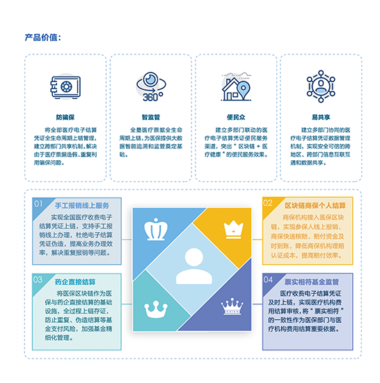 按照《深化医疗收费电子结算凭证在医保领域应用实施方案》(医保办发【2022】23号)的总体要求,以医疗收费电子结算凭证为基础,建设了医保区块链中心及电子结算凭证应用系统,探索医保领域深化应用拓展,加强医疗保障基金监管,促进多层次医疗保障体系发展。