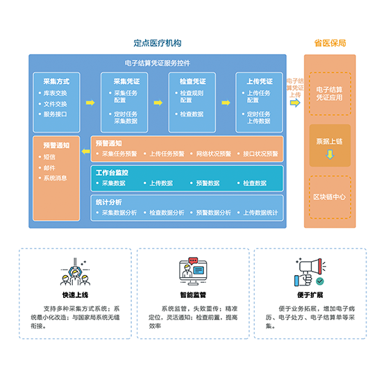 按照《深化医疗收费电子结算凭证在医保领域应用实施方案》(医保办发【2022】23号)的总体要求,以医疗收费电子结算凭证为基础,建设了医保区块链中心及电子结算凭证应用系统,探索医保领域深化应用拓展,加强医疗保障基金监管,促进多层次医疗保障体系发展。